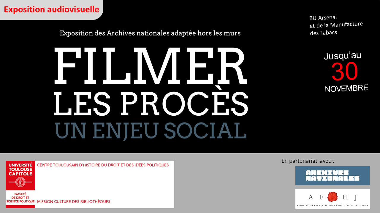 L'accueil de cette exposition est organisé par Marcel Marty (SCD) et Florent Garnier (CTHDIP), en partenariat avec le CTHDIP, la Direction des bibliothèques et de la documentation (SCD) et l'Association française pour l'histoire de la Justice (AFHJ), avec le soutien d'UT Capitole et de la Faculté de droit et science politique.