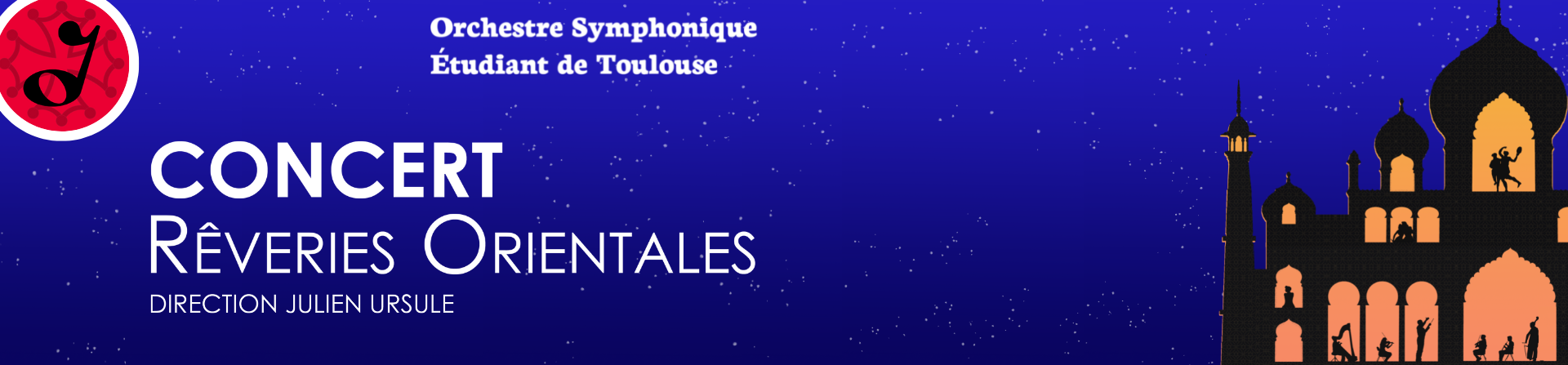 Les 1er et 2 décembre, l'Orchestre Symphonique Étudiant de Toulouse a le plaisir de vous retrouver pour ses concerts de fin de semestre ! Dirigés par notre directeur musical Julien Ursule, les musiciens en formation grand symphonique interprèteront des œuvres qui vous transporteront dans un univers romantique et orientalisant.