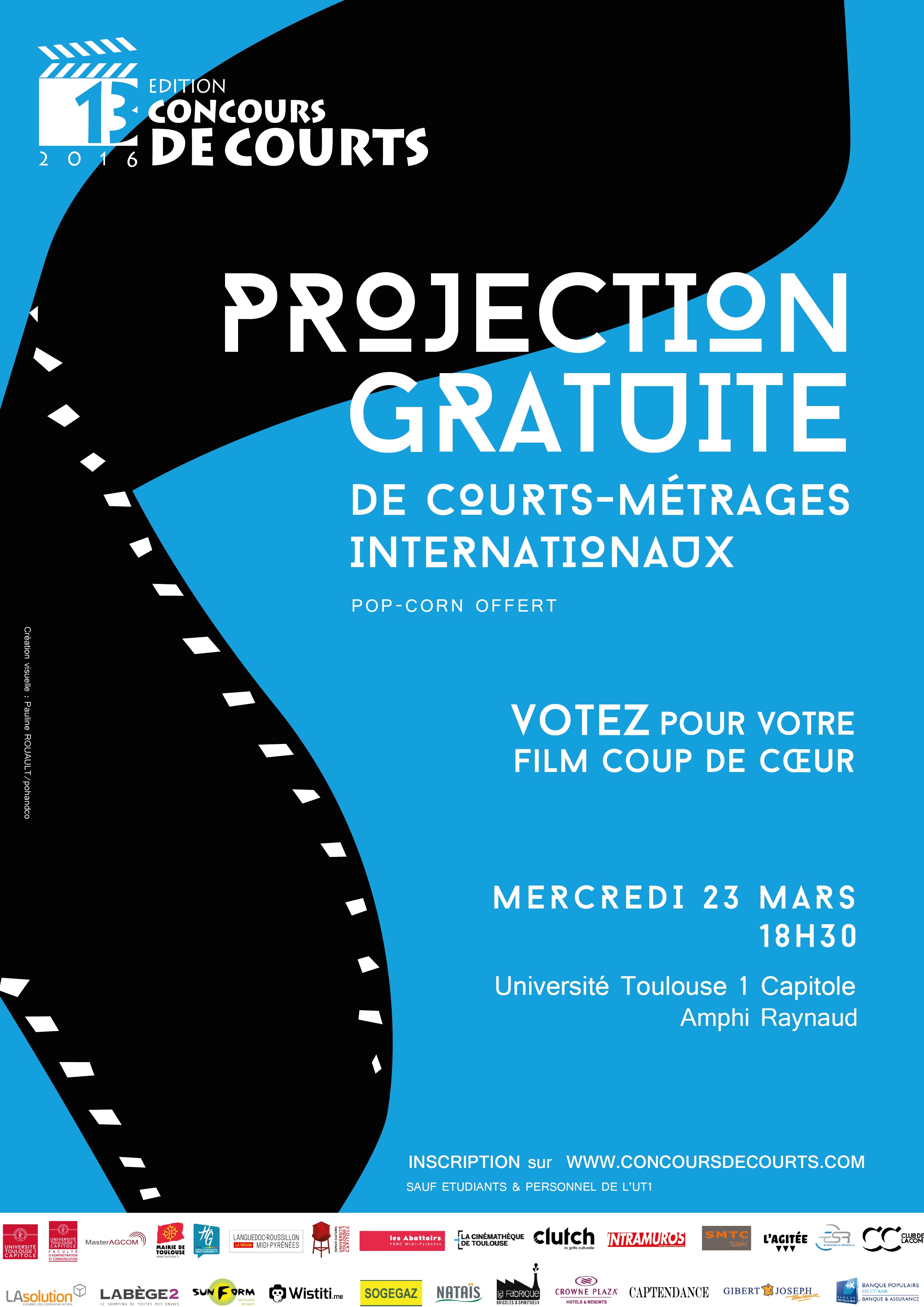 L’équipe organisatrice du Concours De courts 2016 vous invite à sa première projection gratuite à l'Université Toulouse Capitole. Laissez-vous surprendre et votez pour votre court-métrage coup de cœur ! Un rendez-vous à ne pas manquer ...