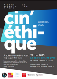 Le cycle « Cin’éthique », qui réunit l’Espace de réflexion éthique Occitanie le Master Ethique du soin, seul Master qui, dans le paysage académique toulousain, fédère enseignants-chercheurs et étudiants de ses trois universités, a pour vocation de susciter des réflexions éthiques sur des problématiques de santé en confrontant la réalité clinique à sa représentation artistique. Chaque soirée commence par la projection d’un film ; elle est suivie d’un débat avec plusieurs spécialistes de la question abordée.