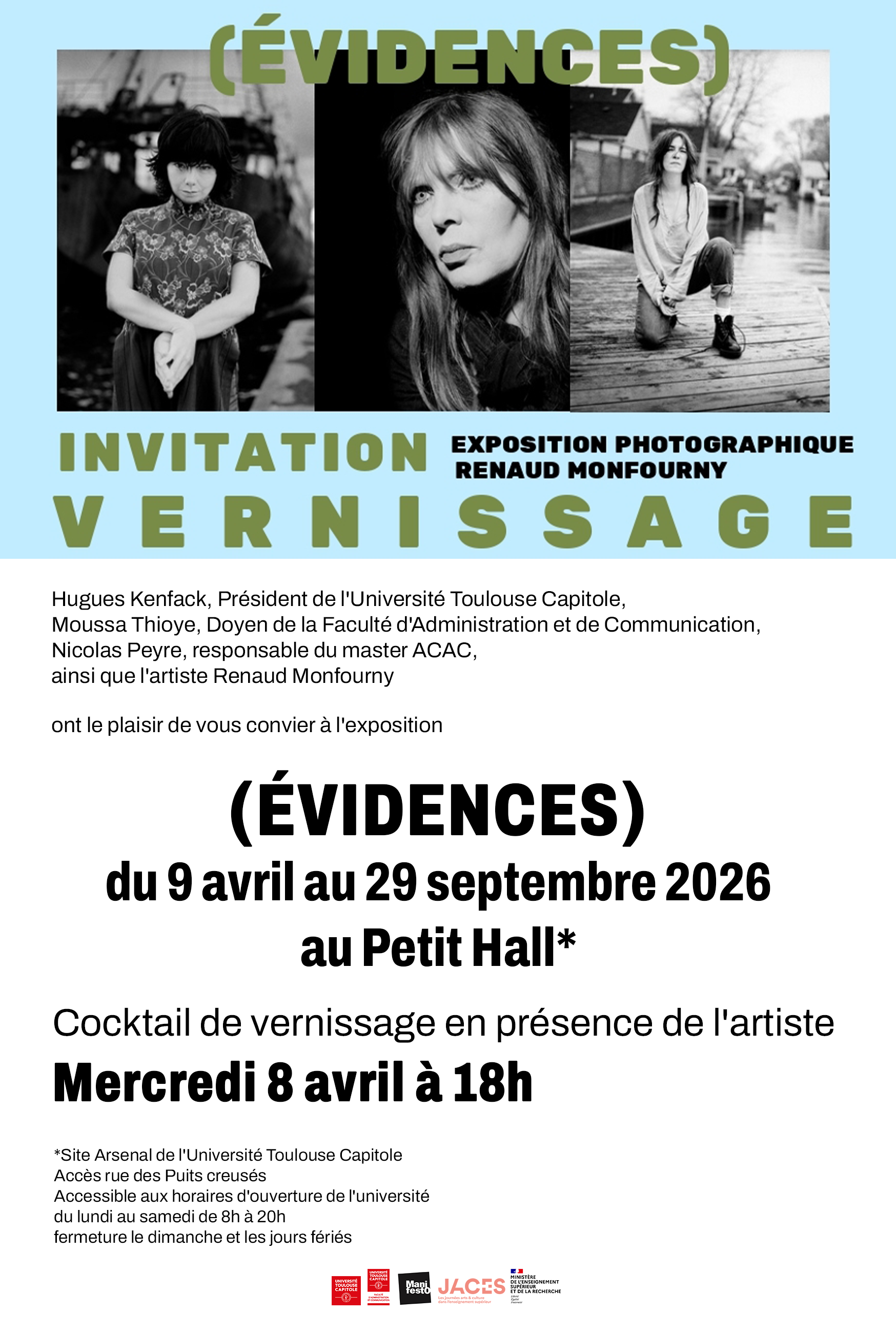 L’Espace culturel de l’Université Toulouse Capitole et le Master 2 Administration et Communication des Activités Culturelles (ACAC) présentent une exposition photo de Renaud Monfourny, connu comme "le photographe des Inrocks".