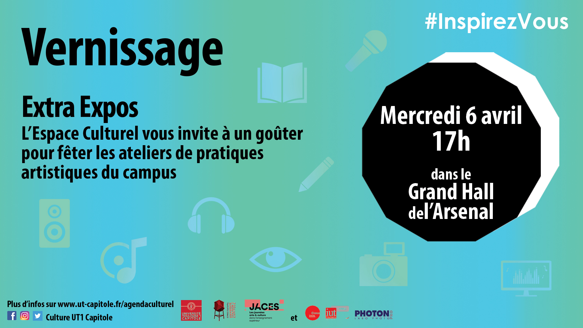 Vernissage/goûter le 6 avril à 17h dans le grand hall de l'Arsenal [Invitation à télécharger] Dans le cadre des JACES - Journée des Arts et de la Culture dans l'Enseignement Supérieur