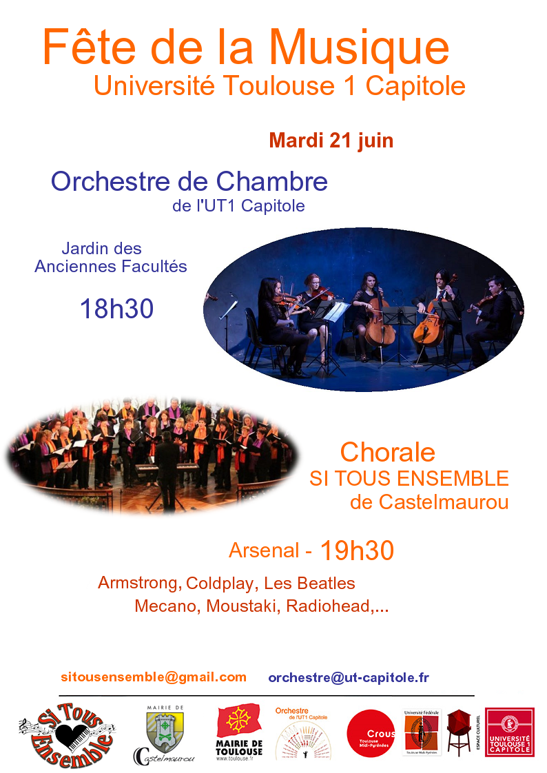 Pour célébrer la fête de la musique, deux formations se produisent le 21 juin sur le campus : l'Orchestre de chambre de l'UT1 Capitole et la chorale Si Tous Ensemble de Castelmaurou.