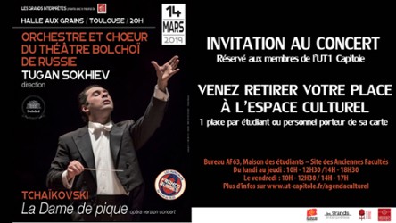 Membres de l'Université Toulouse Capitole, venez retirer vos places à l'Espace Culturel !