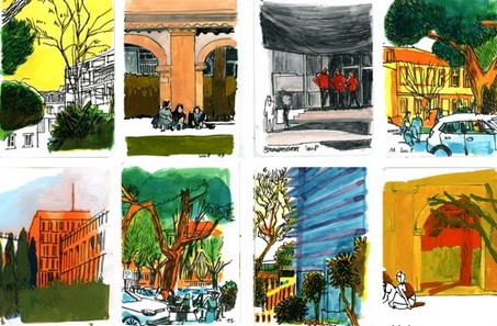 La composition présentée dans la Galerie Si rassemble des dessins capturés sur le motif, à l'Université de Toulouse Capitole.
