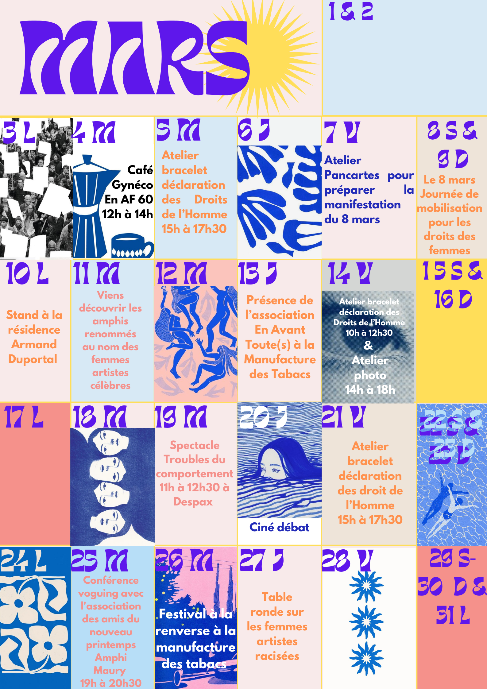 Les rendez-vous s'étendent désormais sur tout le mois de mars qui devient le MOIS DE L'ÉGALITÉ.