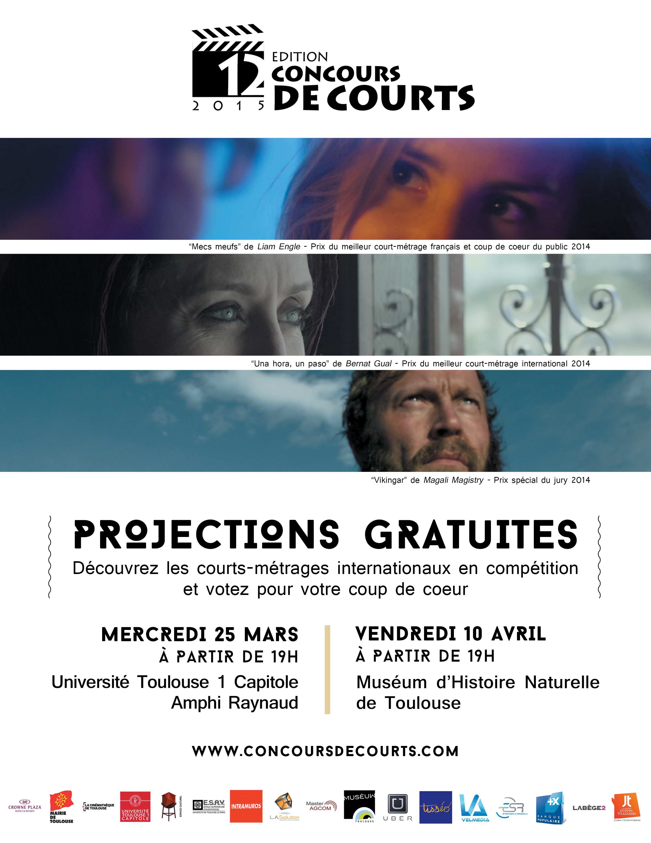 Depuis 12 ans, des élèves du Master Administration et Gestion de la Communication à l’Université Toulouse 1 Capitole organisent le festival de courts métrages internationaux de Toulouse. Comme chaque année, le public joue un rôle primordial puisqu’il est amené à voter pour ses films favoris afin d’élire le prix coup de cœur du public. Pour cette édition, les courts métrages de nombreux talents venus de 25 pays sont diffusés à l’occasion de 3 soirées :