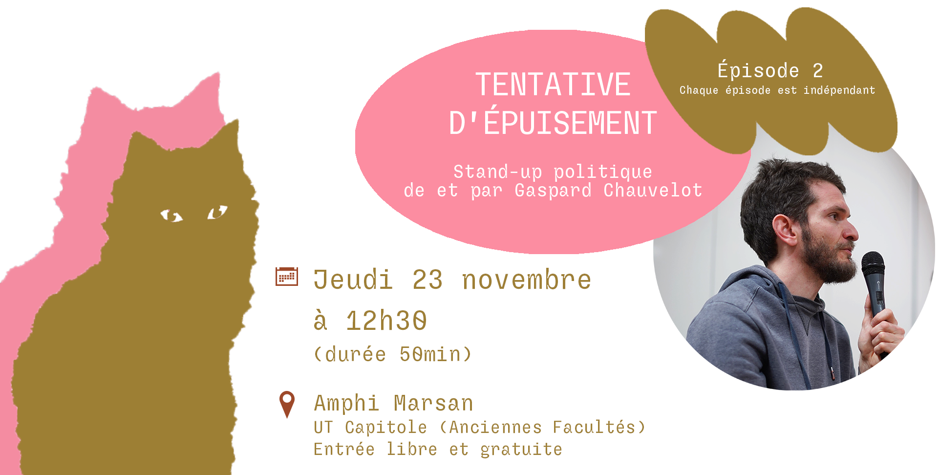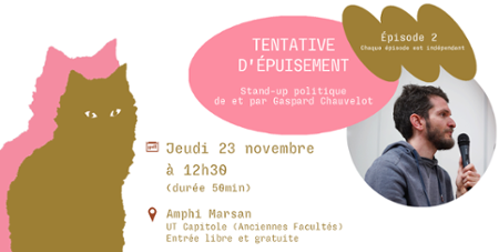 Découvrez le deuxième épisode de la saison 5 des « Tentatives d’épuisement », le stand-up politique de et par Gaspard Chauvelot coproduit par l’Espace Culturel.