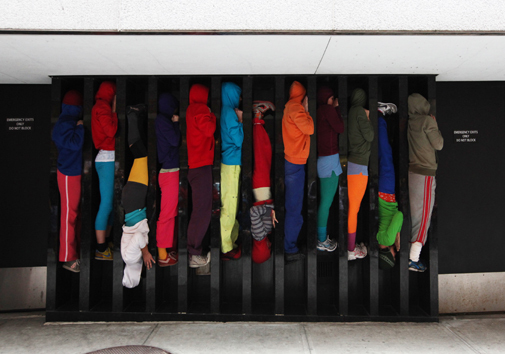 Le chorégraphe autrichien Willi Dorner lance un commando en survêt' à capuche dans les rues de Toulouse. Corps amoncelés, corps imbriqués, soigneusement rangés les uns à côté des autres, ou encore corps encastrés, glissés dans les fissures et les entre-deux de l'espace urbain, Willi Dorner compose avec de la matière vivante une chaîne de sculptures abstraites, dépose des danseurs tels des traits de couleur sur le pavé, le béton, le bitume et le mobilier urbain.
