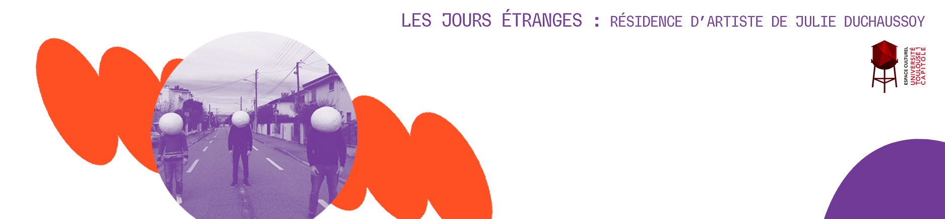 Julie Duchaussoy est l’artiste en résidence de création dans notre université cette année. La comédienne et metteuse en scène propose de fabriquer des jours étranges sur le campus, des moments qui sortent les étudiants de leurs quotidiens, avec des performances dont ils sont parfois complices, parfois spectateurs, performances inattendues qui donneront à sourire et à penser. Après un premier Jour étrange imaginé en complicité avec les L3 Compta-contrôle de TSM en novembre, d’autres rendez-vous s’égraineront jusqu’en avril.