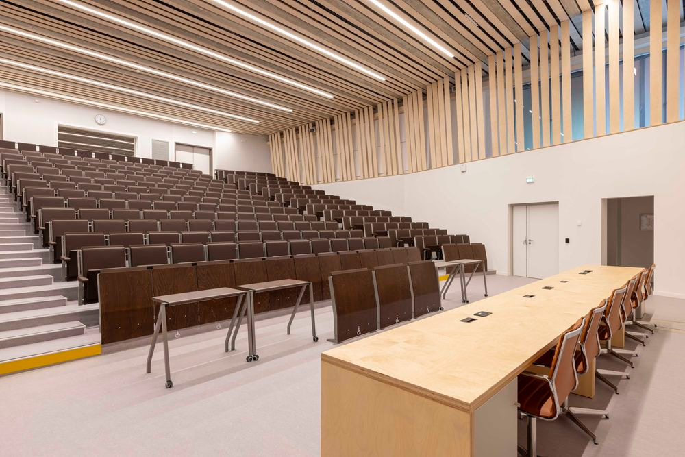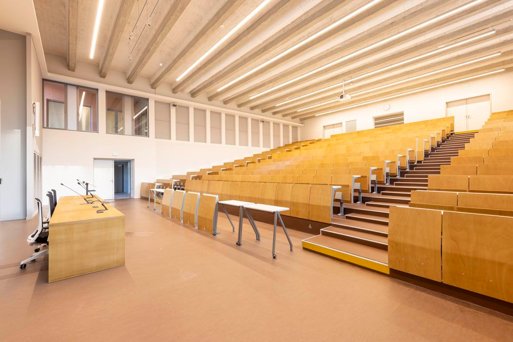 - 3 amphithéâtres de 300 à 320 places pour l'enseignement et la recherche,