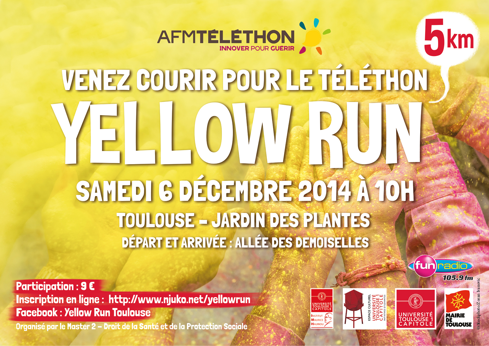 Les partenaires principaux de l'évènement sont l'AFM Téléthon, la mairie de Toulouse et l'Université Toulouse 1 Capitole pour la correcte mise en oeuvre de l'évènement Yellow Run.