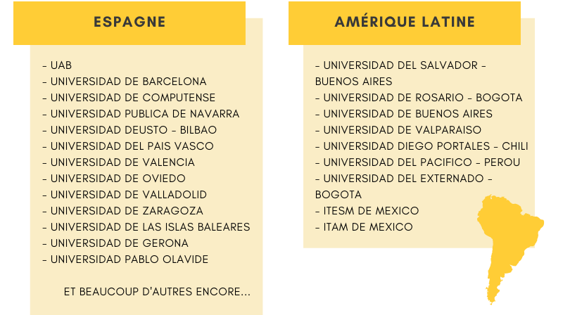 La 3° année se déroule à l'étranger dans une université partenaire (Espagne ou Amérique Latine). Les étudiants sont affectés en fonction de leurs vœux et de leurs résultats. Ils sont suivis par un conseiller pédagogique qui valide leur choix de cours.