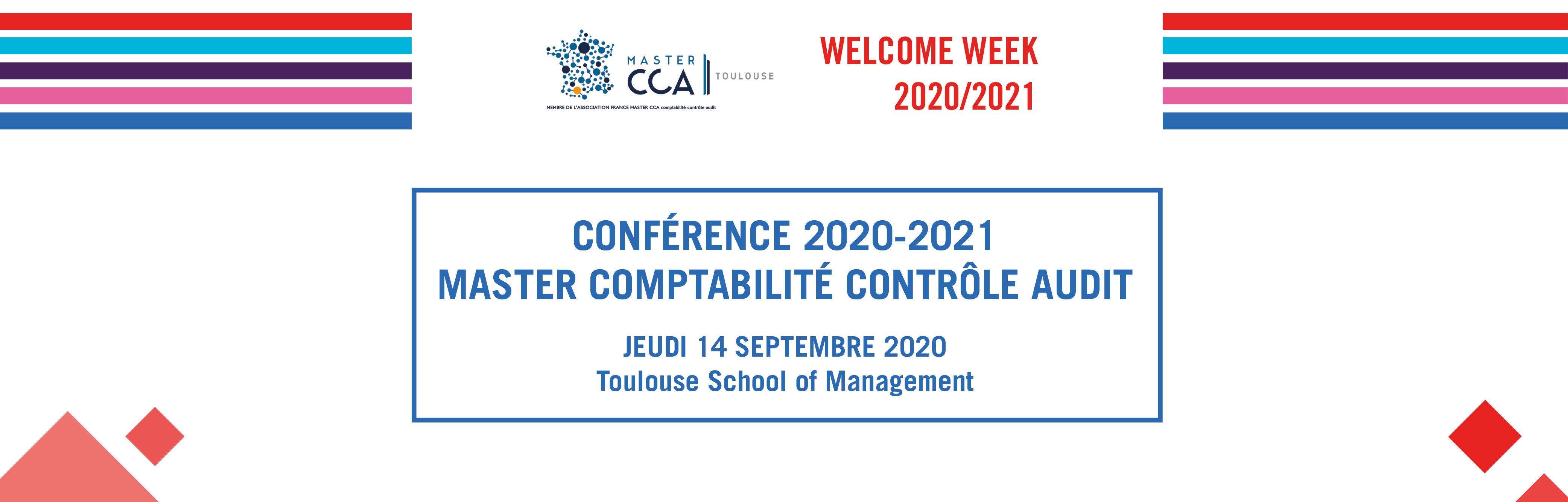 La conférence de rentrée du Master Comptabilité, Contrôle, Audit (CCA) accueillera Fabien Mathieu (associé du cabinet Deloitte Sud-Ouest), parrain de la promotion 2020-2021. Etudiants de M2, rendez-vous le 14 septembre 2020 de 17h15 à 18h30 en amphi V. Etudiants en M1, une retransmission de la conférence en différé est prévue.