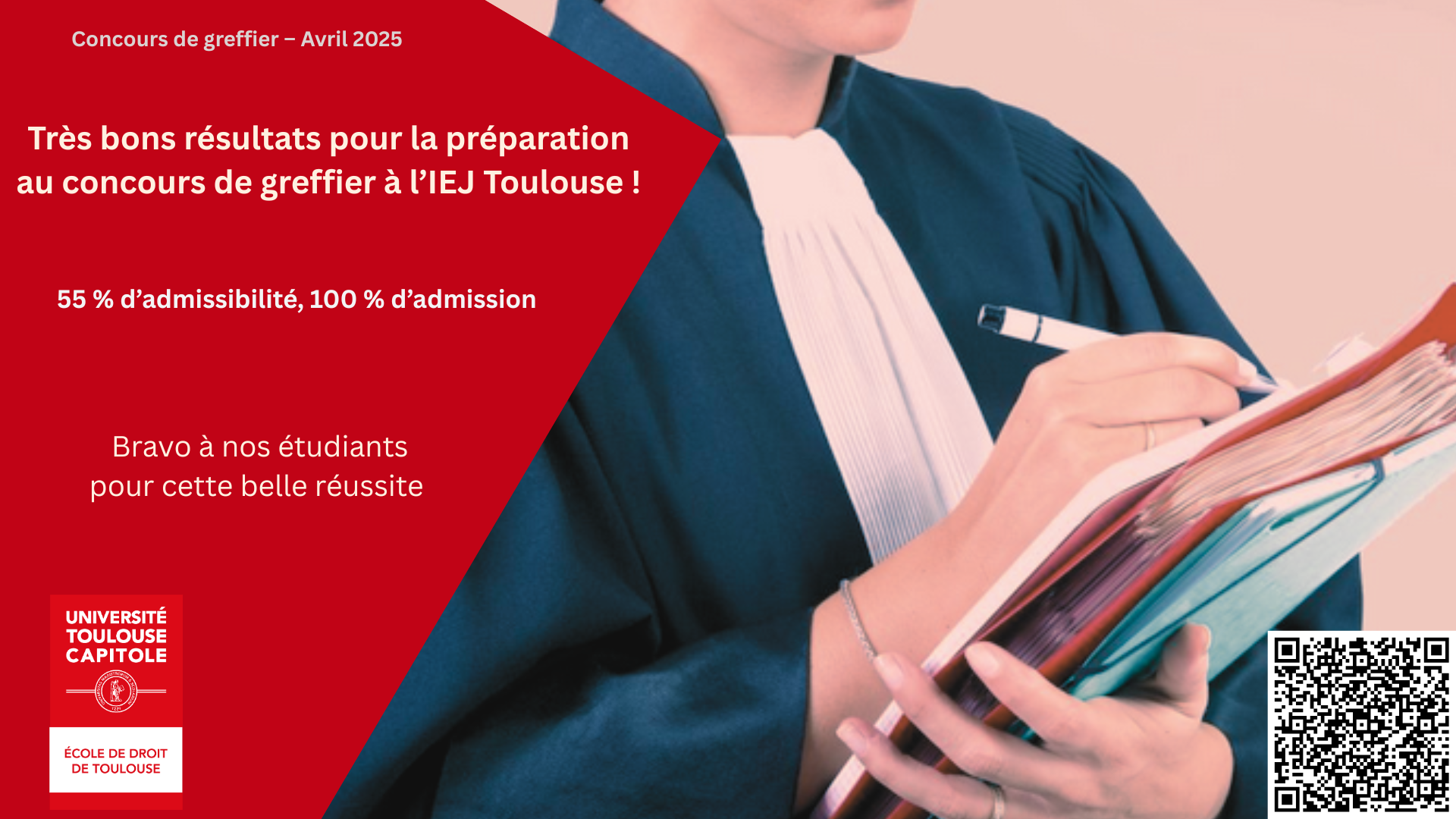 L’Institut d'Études Judiciaires de Toulouse a le plaisir d’annoncer les très bons résultats obtenus par les étudiants inscrits à la préparation au concours d'accès à l'école nationale des Greffes.