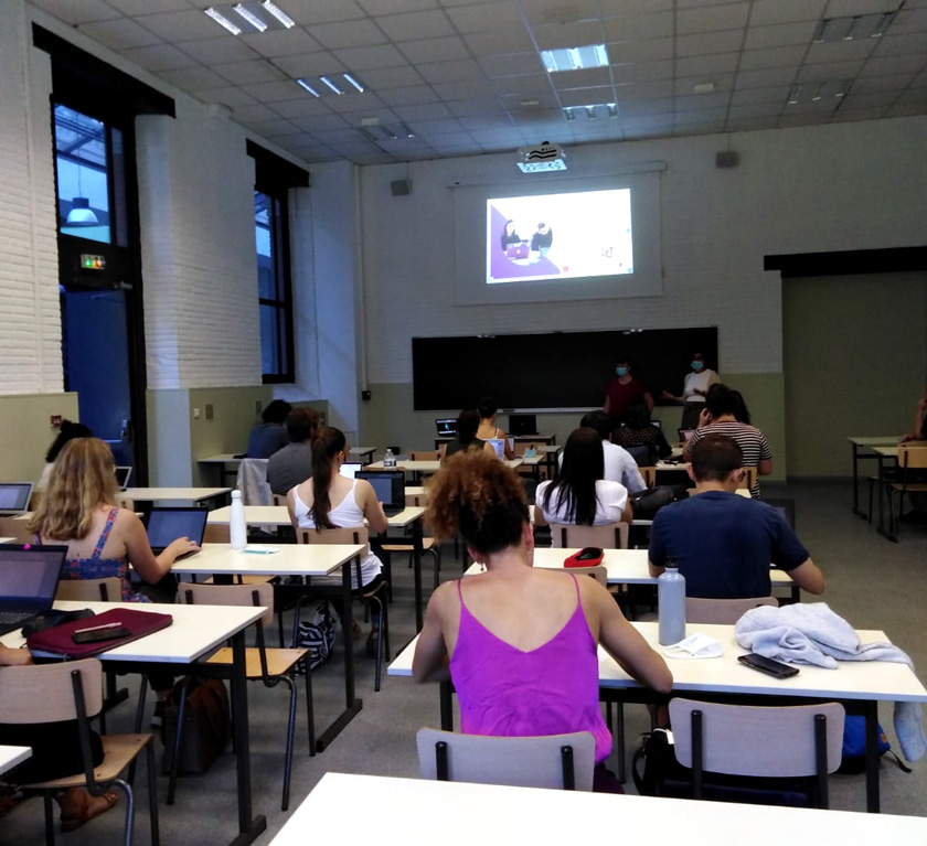 Notre équipe est déjà sur place, enjouée et masquée, pour présenter le cursus de formation innovant Disrupt' Campus Toulouse : mercredi dernier avec les étudiants du Master 2 GBM - Génie biomédical et ce jeudi 3 septembre avec les étudiants du Master Droit du Numérique et Intelligence Artificielle.