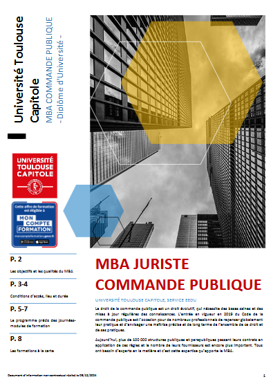 Cette formation permet d’envisager les risques et de gérer les contentieux de la commande publique. Elle permet une approche globale des contentieux possibles en distinguant principalement entre les contentieux de la passation, y compris les contentieux pénaux, et les contentieux de l’exécution des contrats de la commande publique. Anticiper les différents recours en référé (notamment contractuels et pré-contractuels, mais aussi l’usage des référés classiques) ou des recours spéciaux propres à cette matière permet d’envisager sereinement ses procédures de passation dès l’amont. Les modalités de règlement des conflits en dehors du juge sont bien entendu aussi abordées.