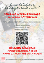 Ne manquez pas la semaine de la mobilité internationale qui aura lieu du 10 octobre au 14 octobre 2022.