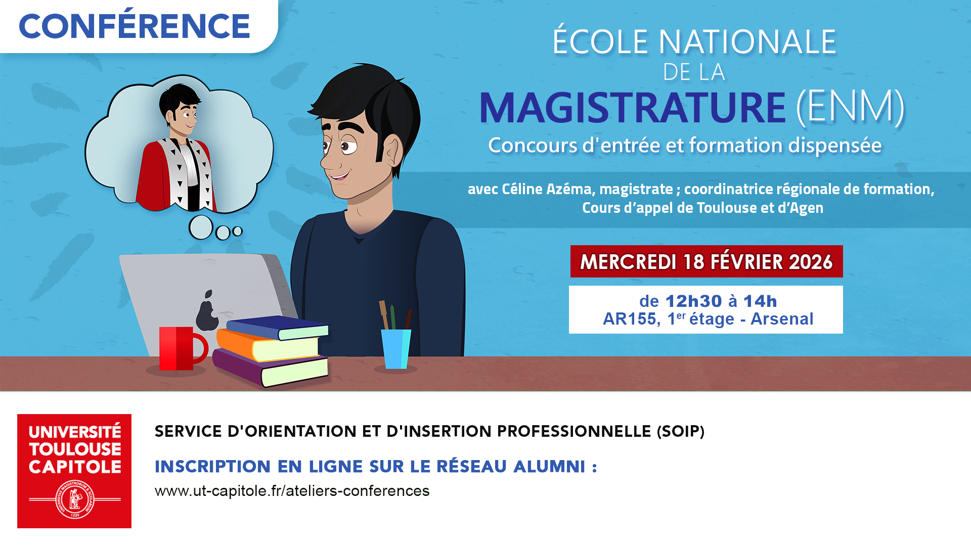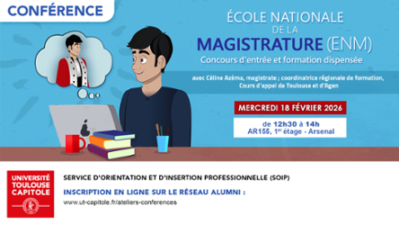 Vous envisagez de passer le concours de l'ENM pour devenir magistrat ? Assistez à la conférence animée par Madame Azéma pour tout savoir sur le concours d'entrée et la formation d'auditeur de justice dispensée par l'ENM.