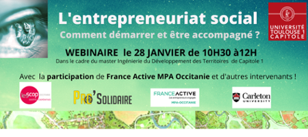 Les étudiants du Master 2 d’Ingénierie du Territoire propose un Webinaire sur l'entrepreneuriat social pour les étudiants et plus largement les porteurs de projets et les institutionnels.