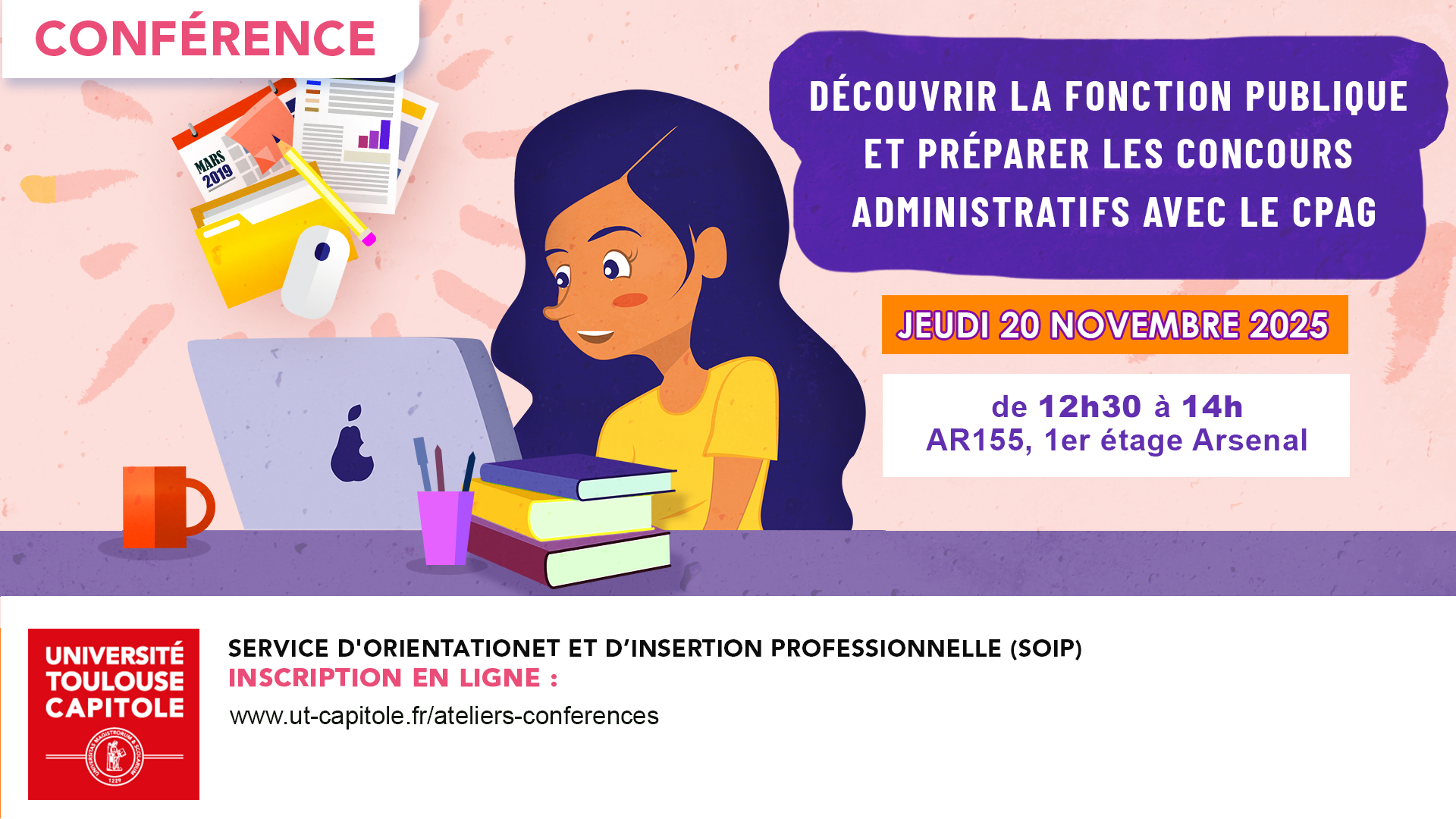 Venez assister à la conférence sur la fonction publique et les différentes préparations aux concours proposées par le Centre de Préparation à l'Administration Générale (CPAG) de Sciences Po Toulouse. Des préparations sur l'année, en intensif, préparation diplômante ou non, LAP.... vous saurez tout !