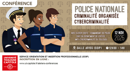 Conférence salle AR 155 (bât. Arsenal, 1er étage, SOIP) avec Olivier Coste, Commandant de police, OPJ, Chef du Détachement de l'Office Anti-Cybercriminalité, Division de la Criminalité Organisée et Spécialisée.