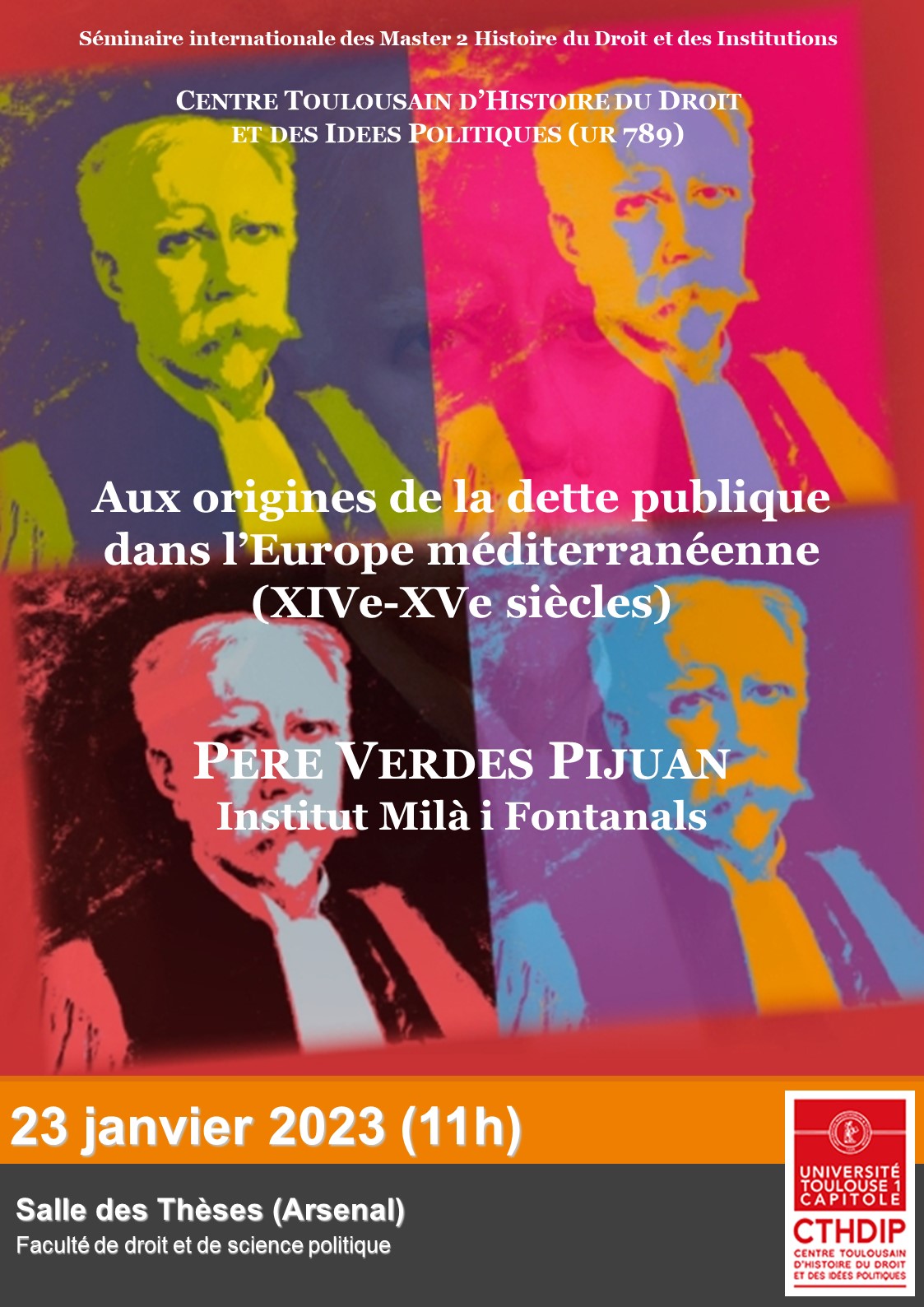 "Aux origines de la dette publique dans l’Europe méditerranéenne (XIVe-XVe siècles)", conférence de Pere Verdes Pijuan organisée par le CTHDIP