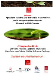 "Agriculture, industrie agro-alimentaire et innovation : le rôle de la propriété intellectuelle. L'exemple de Midi-Pyrénées" colloque CDA-EPITOUL