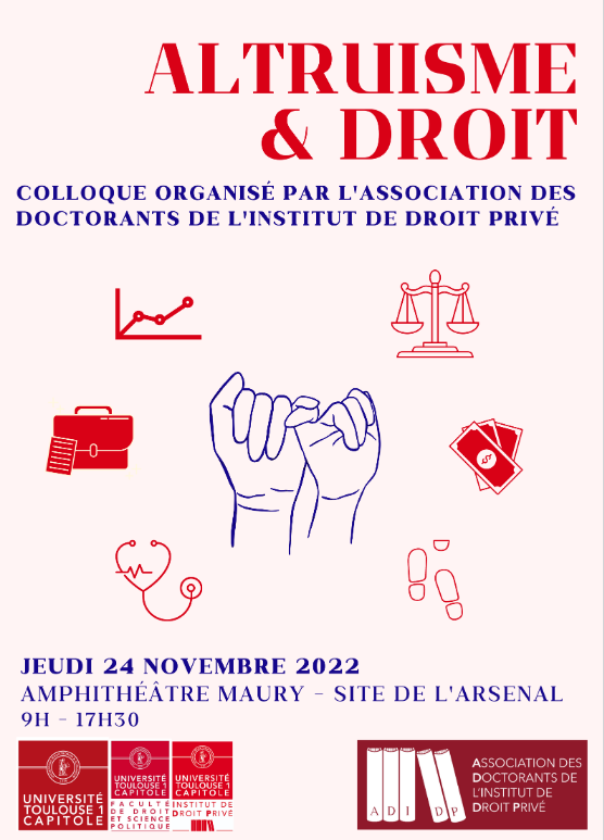 L'association des doctorants de l'Institut de Droit Privé de la Faculté de Droit et Science Politique ont le plaisir de vous convier à un colloque sur la thématique de l'altruisme et du droit.