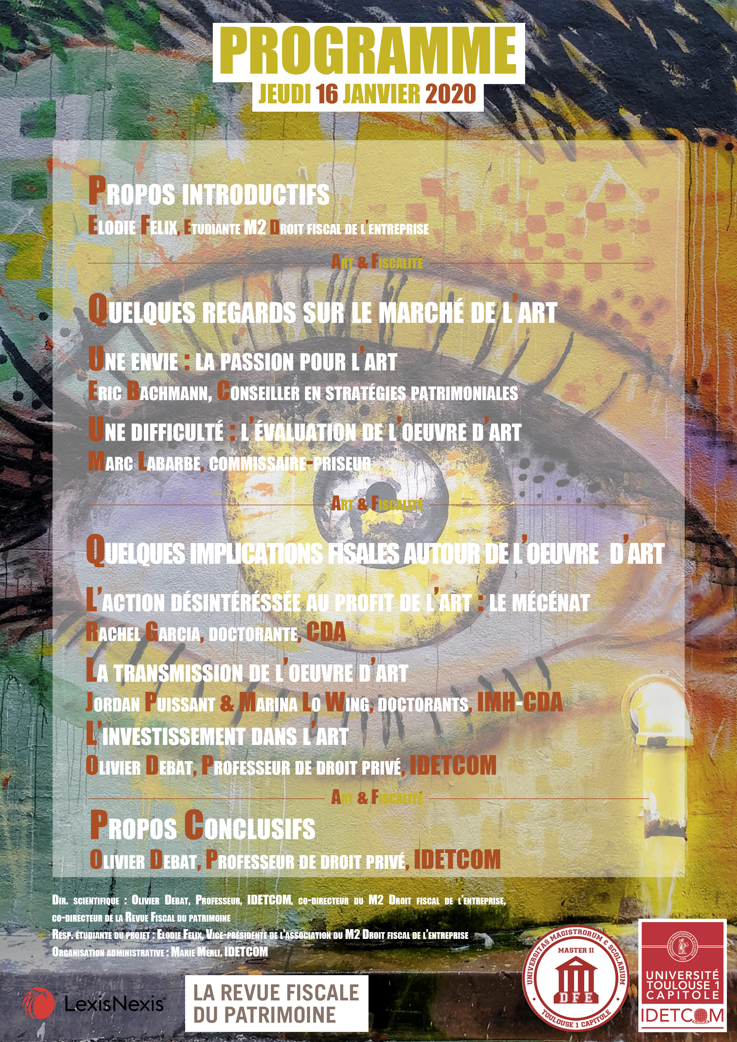 Directeur scientifique du projet : Olivier Debat. Séminaire organisé par l'IDETCOM en partenariat avec le Master 2 Droit fiscal de l'entreprise et sa Vice-présidente Elodie Félix.