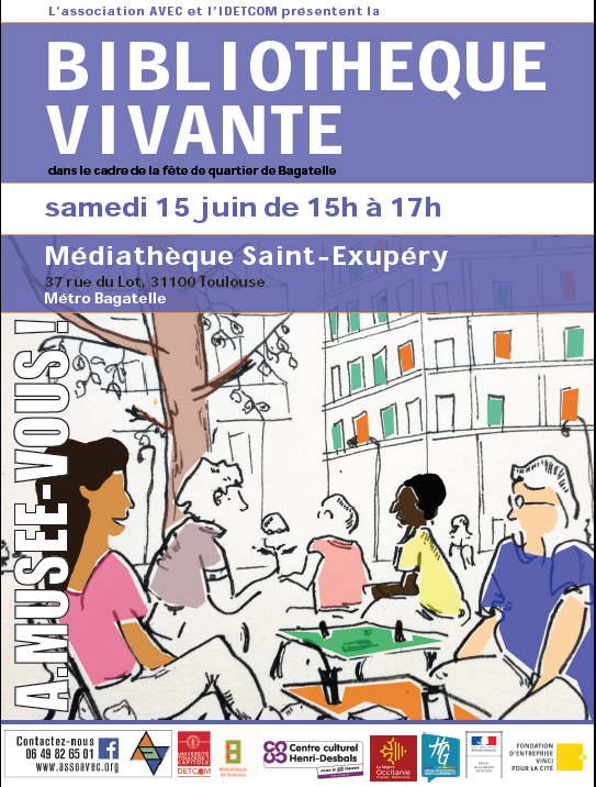 Bibliothèque Vivante "A.musée-vous". Manifestation organisée par l'IDETCOM en partenariat avec l'association "AVEC" (Actions pour Vaincre l'Exclusion de Citoyens)