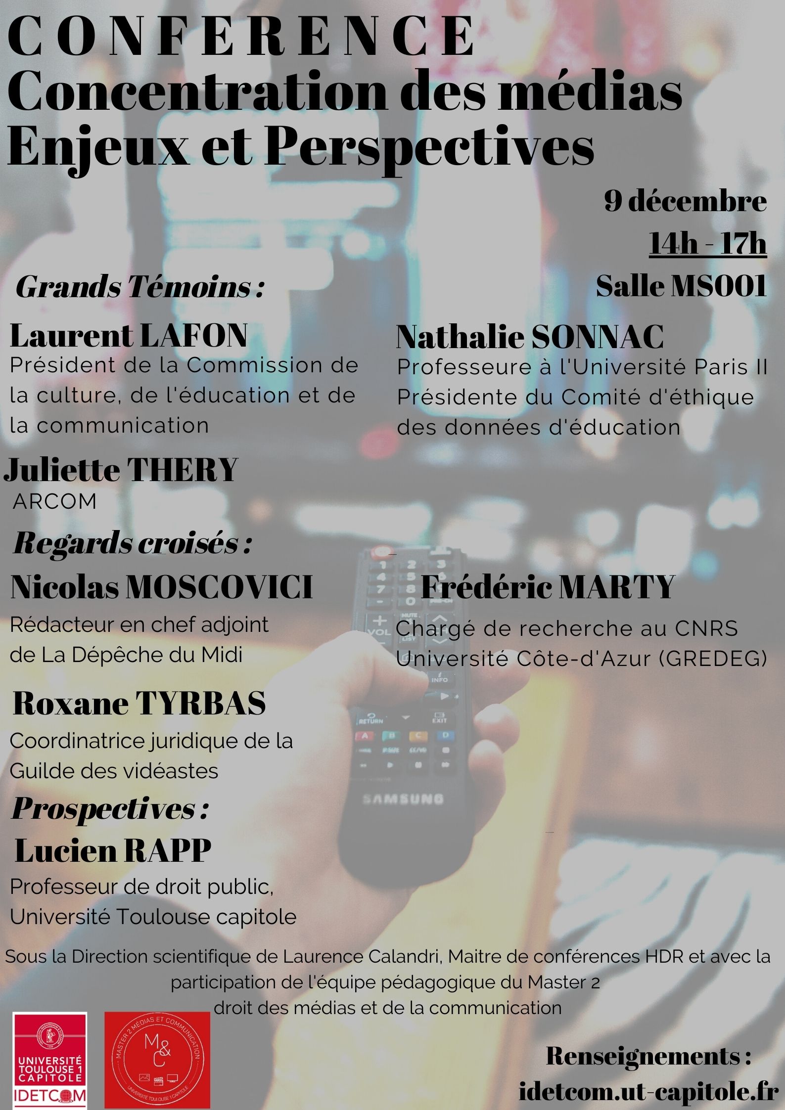 Conférence sous la Direction scientifique de Laurence Calandri, Maître de conférences HDR, et avec la participation de l'équipe pédagogique du Master 2 Droit des Médias et de la Communication.
