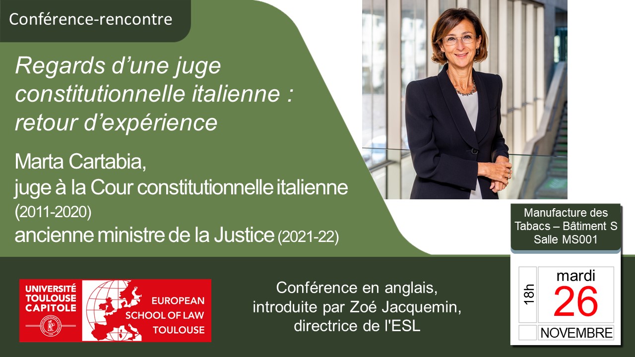 L'European School of Law Toulouse organise une conférence-rencontre avec Marta Cartabia.