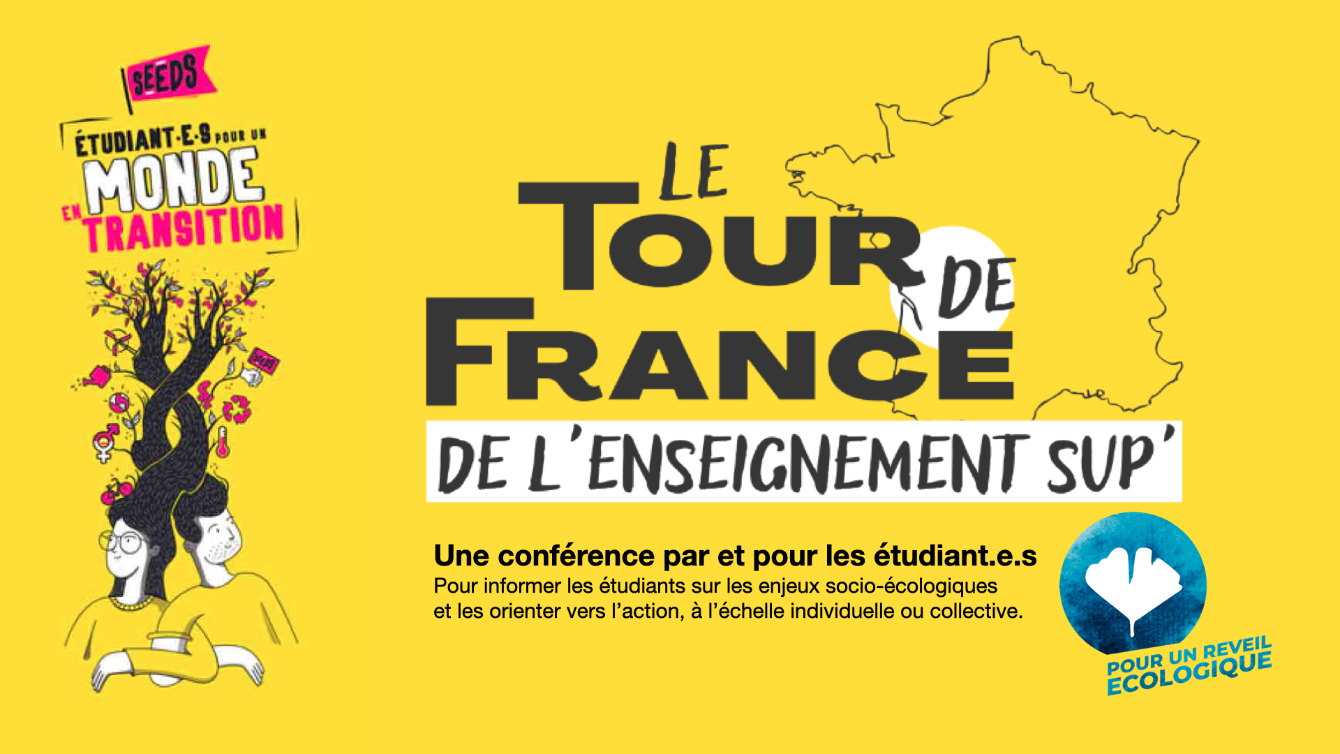 "Désastres environnementaux et sociaux : quel rôle pour la jeunesse ?", conférence interactive par et pour les étudiants, pour informer sur les enjeux socio-écologiques et pour orienter vers l'action, à l'échelle individuelle ou collective : mardi 11 octobre, 18h30. Cette conférence sera introduite par le Président de l'Université, M. Hugues Kenfack, et complétée par un temps d'échanges. Elle est organisée par le collectif "Pour un réveil écologique" dans le cadre de son Tour de France de l'Enseignement sup'.