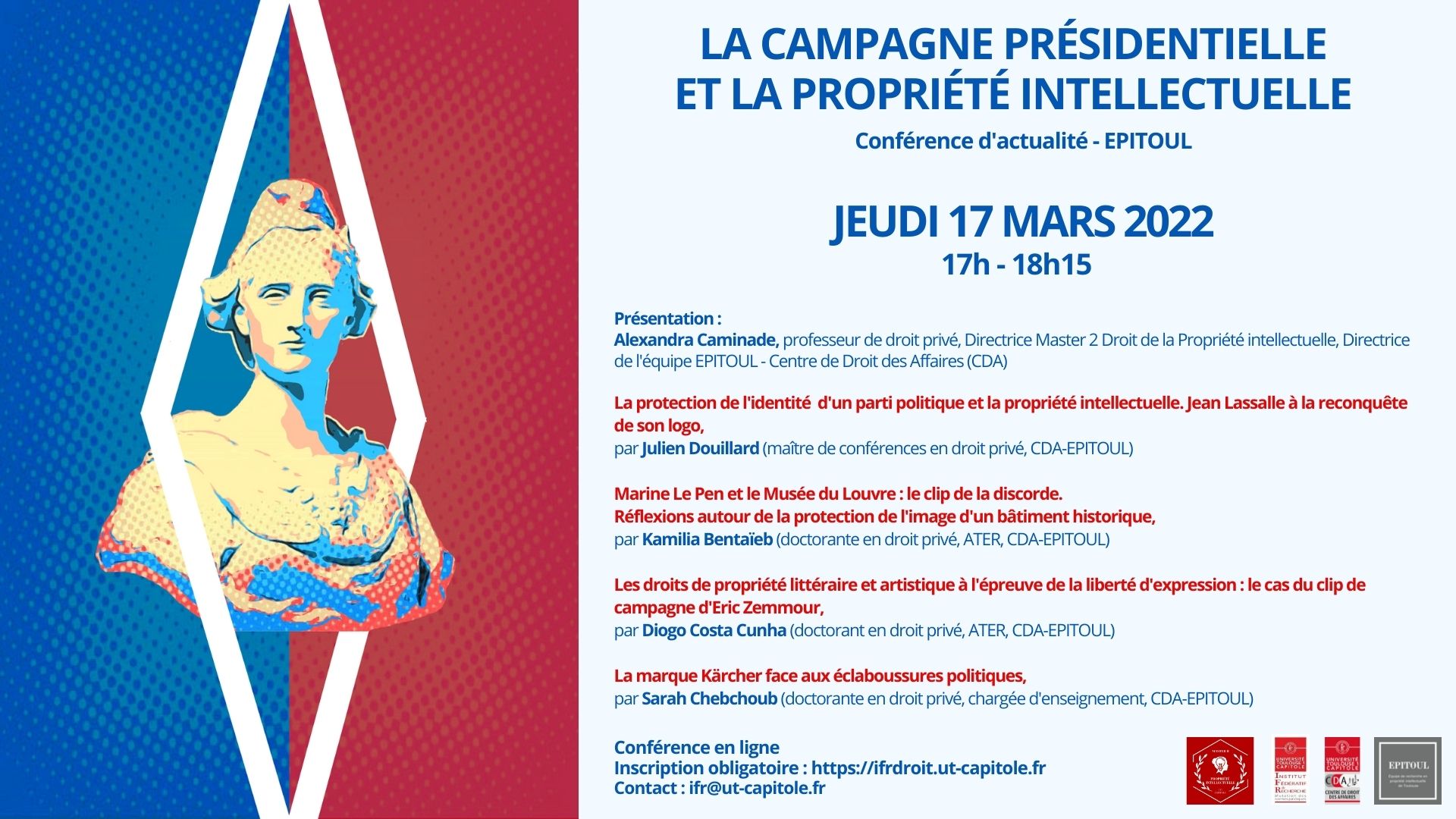 L’équipe EPITOUL – CDA organise le jeudi 17 mars 2022 à 17H une conférence EN LIGNE sur « Campagne présidentielle et Propriété intellectuelle ».