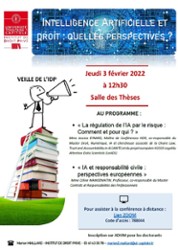 L'Institut de Droit Privé organise une veille juridique, le jeudi 3 février 2022 à 12h30, en salle des thèses, sur le thème :