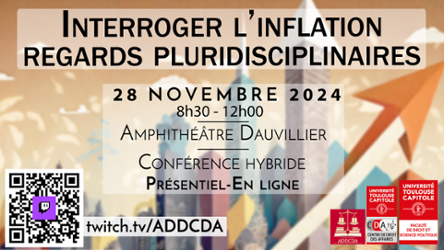 L'objectif de ce colloque est donc de réunir, le temps d'une journée, des intervenants et intervenantes de tous horizons autour de cette question commune qu'est l'inflation, favorisant ainsi le développement de perspectives novatrices.