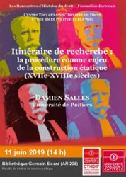 "Itinéraire de recherche : la procédure comme enjeu de la construction étatique (XVIIe-XVIIIe siècles)", conférence doctorale de Damien SALLES proposée par le CTHDIP