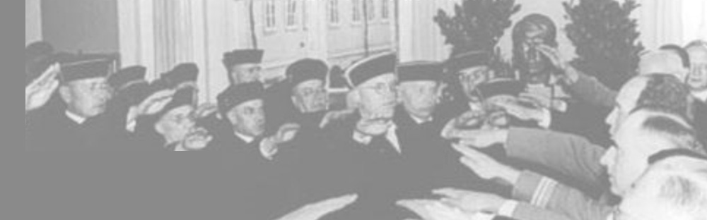 C’est généralement au nom des valeurs que l’on refuse au « droit nazi » sa qualité de « droit ». Cette manière, évidemment légitime, présente cependant le défaut de ne pas permettre une véritable compréhension de ce droit étrange et inquiétant, de ce droit monstrueux et, à travers lui, de l’idéologie du nazisme c’est-à-dire plus précisément de la grammaire et la rhétorique de cette idéologie. Photo