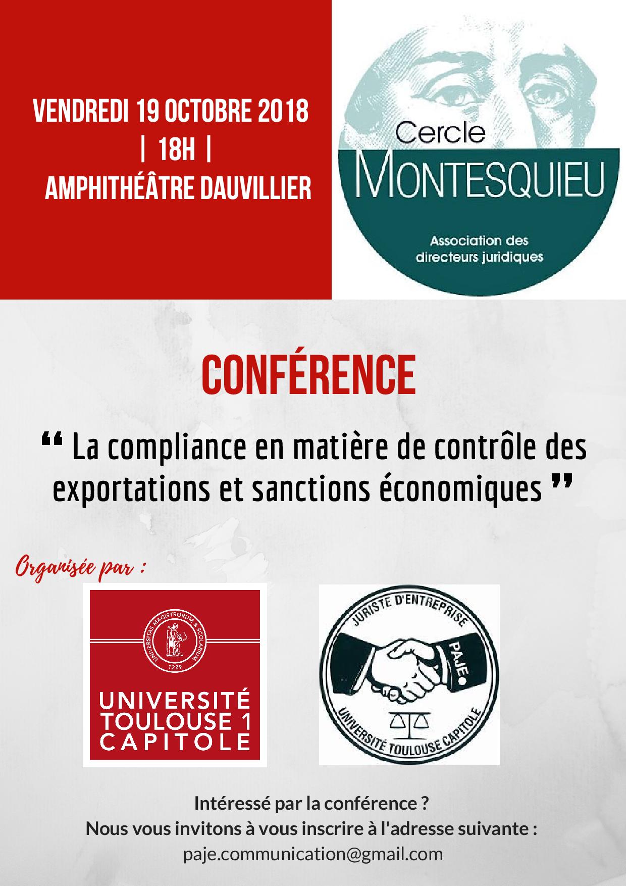 "La compliance en matière de contrôle des exportations et sanctions économiques", conférence de l'Association PAJE