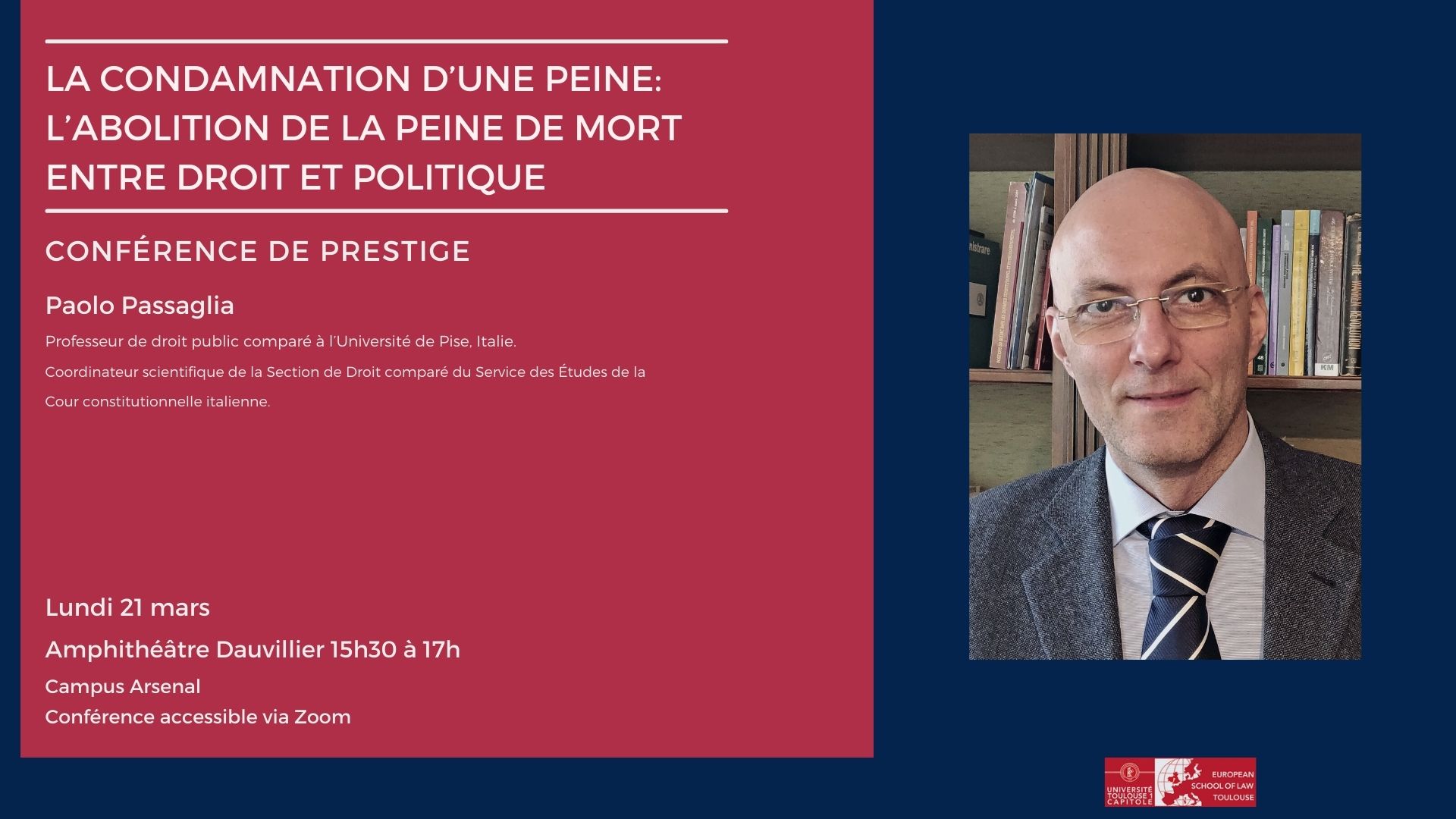 La European School of Law Toulouse accueil le Professeur Paolo Passaglia à l’occasion de la conférence de prestige La condamnation d’une peine : l’abolition de la peine de mort entre droit et politique