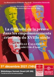"La difficulté de la preuve dans les empoisonnements criminels du XVIIIe siècle", conférence organisée par le CTHDIP