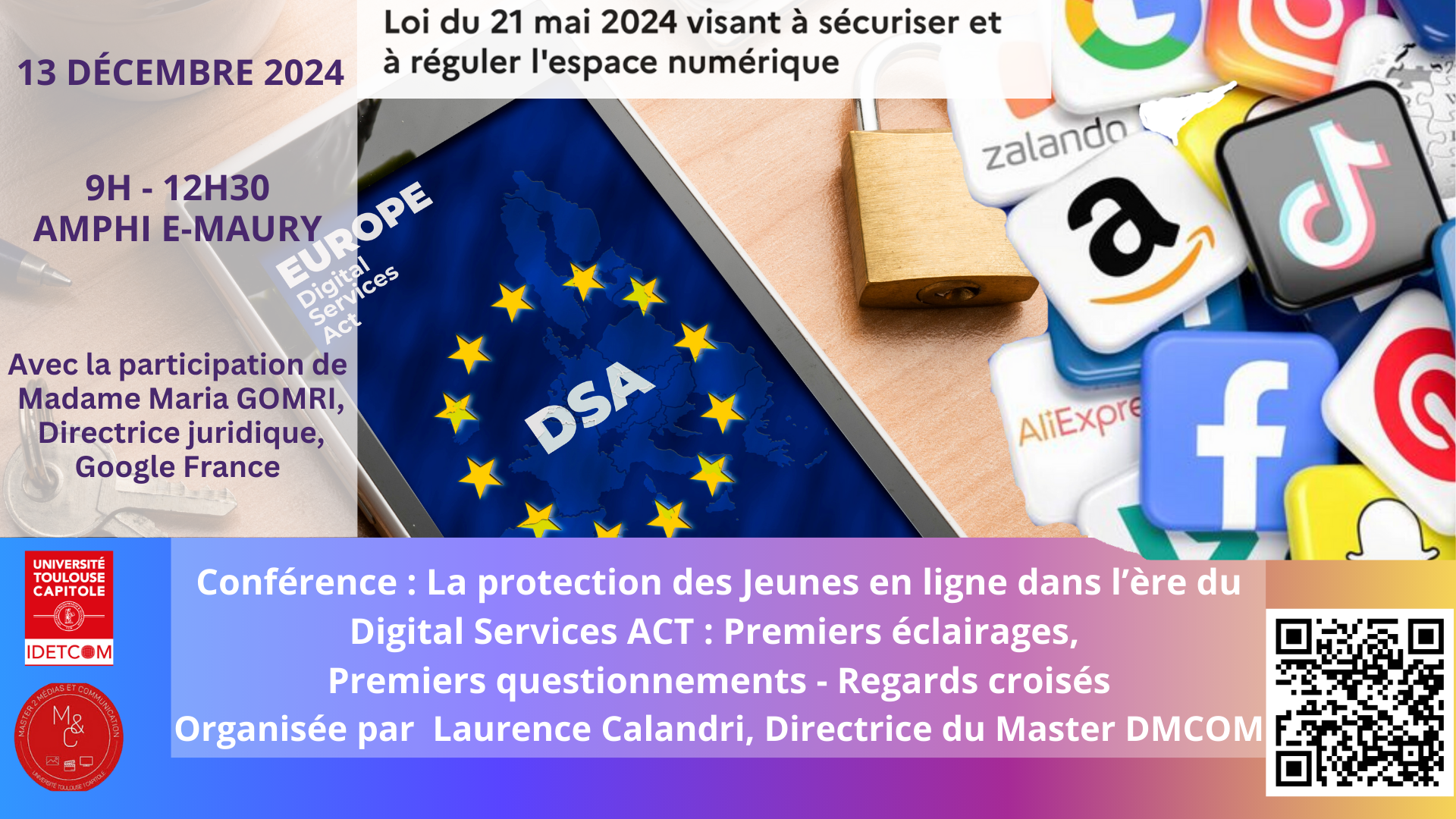 "La protection des Jeunes en ligne dans l’ère du Digital Services ACT : premiers éclairages, premiers questionnements - Regards croisés", conférence organisée par le Master DMCOM