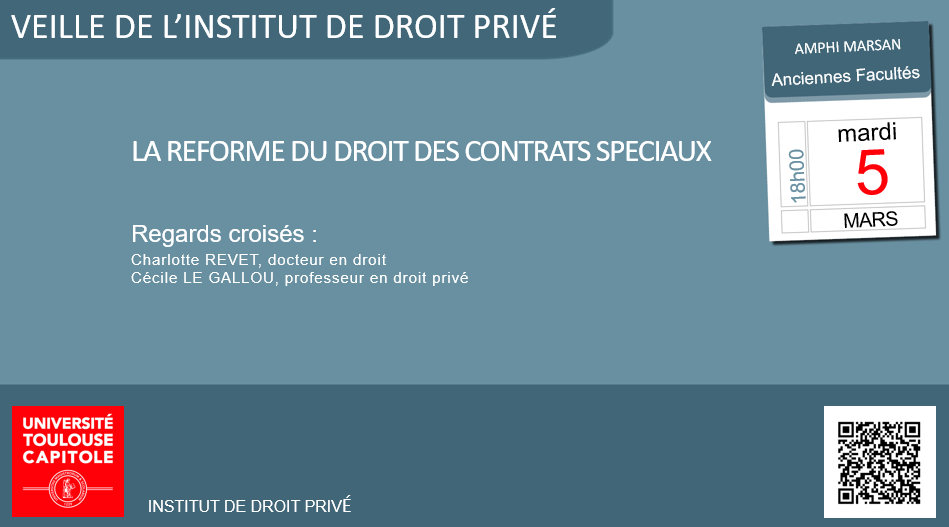 L'Institut de Droit Privé organise une veille juridique, le mardi 5 mars 2024 à 18h00, en amphithéâtre Marsan.