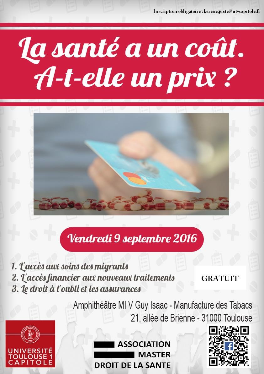 "La santé a un coût. A-t-elle un prix?" Colloque organisé par le Master 2 droit de la santé