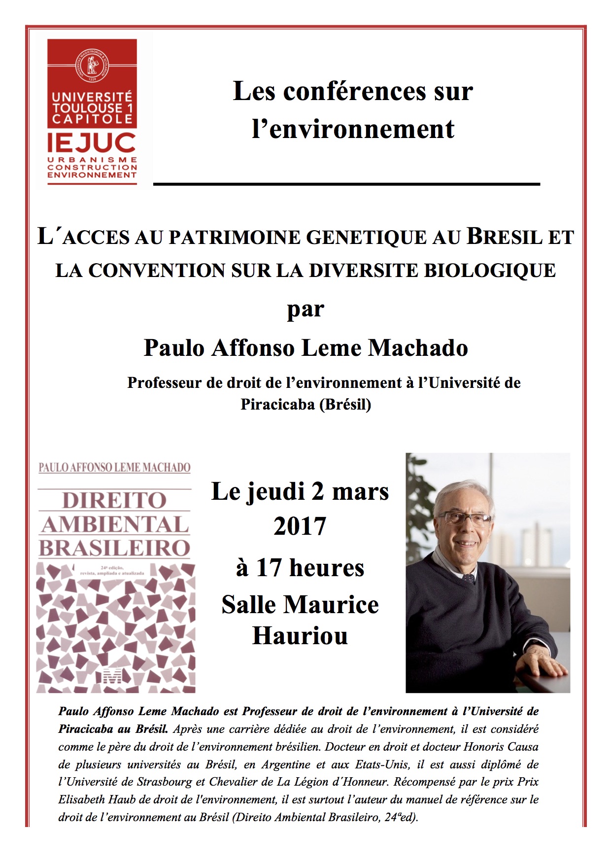 "L'accès au patrimoine génétique au Brésil et la convention sur la diversité biologique" colloque de l'IEJUC