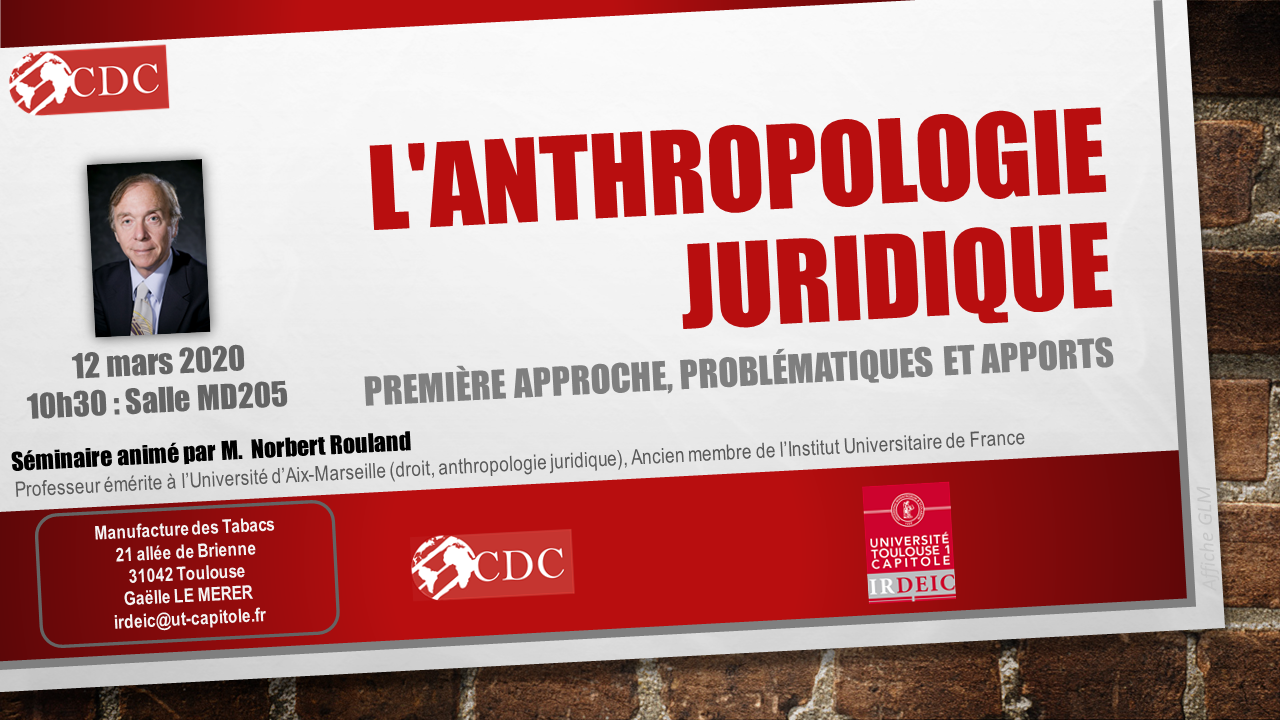 "L'anthropologie juridique", séminaire animé par M. Norbert Rouland, IRDEIC / CDC