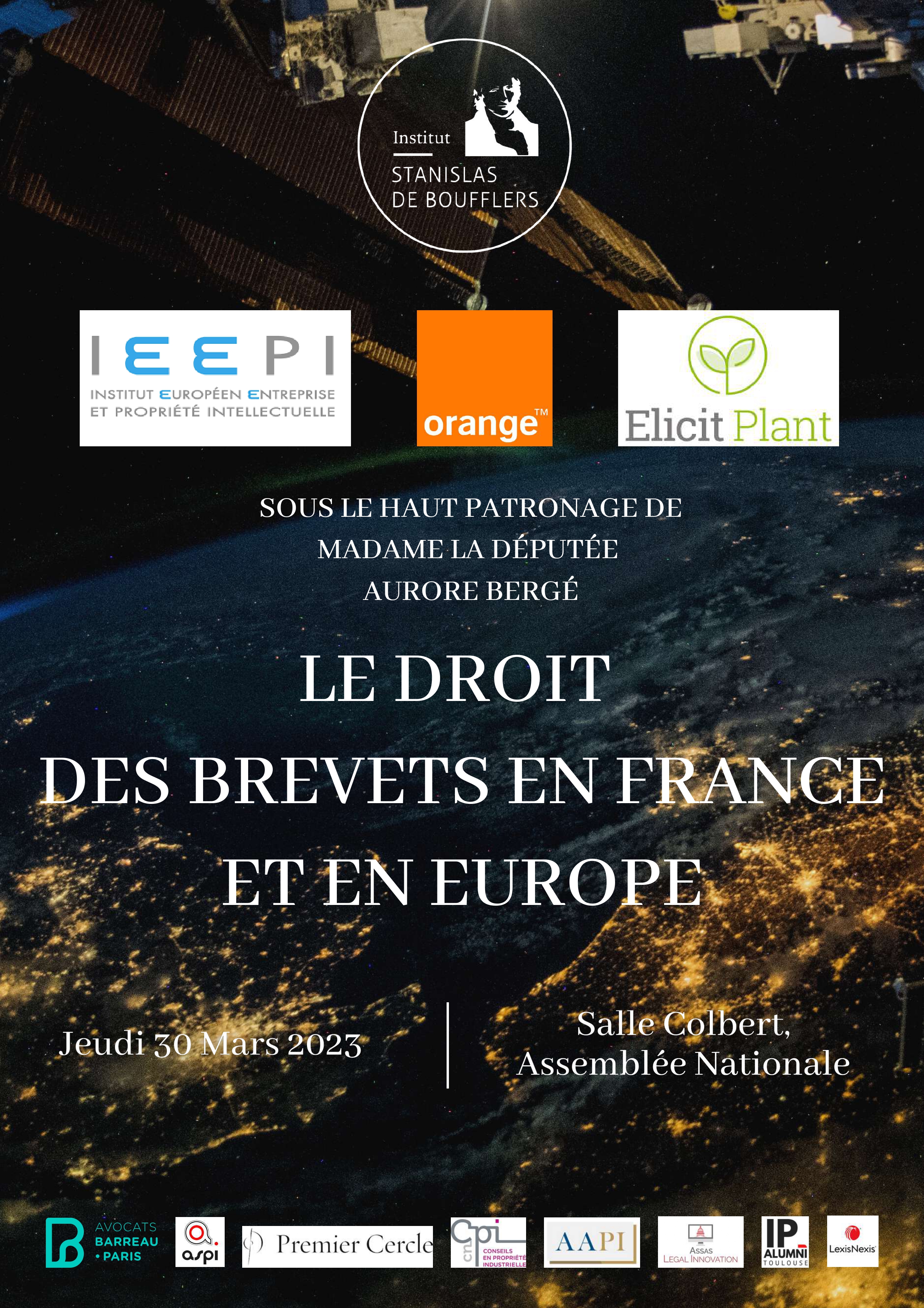 Ce colloque vous est proposé par l'Institut Stanislas de Boufflers. Il est sponsorisé par ORANGE et l'IEEPI, en partenariat avec la COMPI, la CNCPI, l'ASPI, l'AAPI, Premier Cercle, l'IP Alumni Toulouse, Lexis Nexis et Assas Legal Innovation.