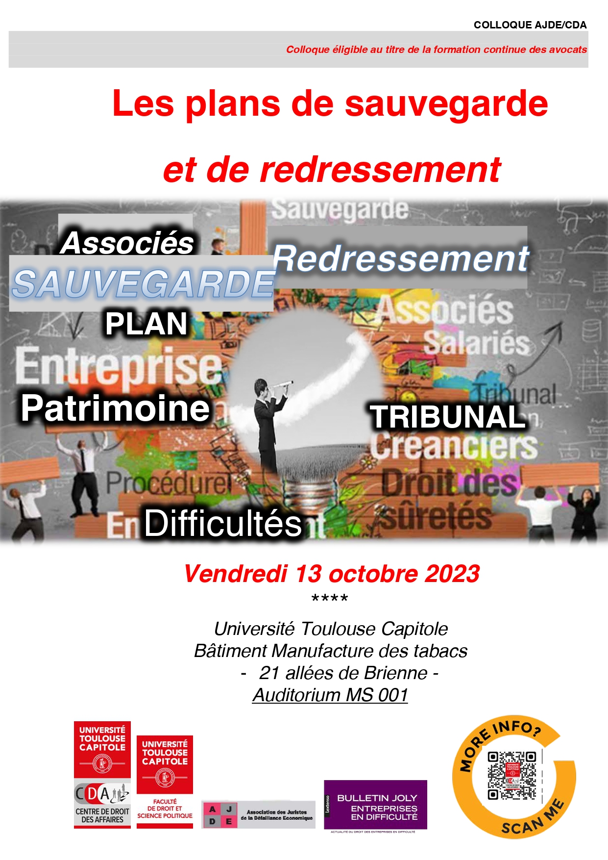 Ce colloque annuel de l’AJDE, organisé en partenariat avec le Centre de Droit des Affaires de l’Université de Toulouse Capitole, et particulièrement avec l'axe de recherche sur les entreprises en difficulté (CREDIF), propose grâce à l’expertise d’universitaires et de praticiens de passer au crible les récentes innovations et les derniers concepts mis en place afin d’améliorer le corps de règles existant tout en révélant en quoi cet instrument se nourrit autant des mutations de la discipline qu’il ne les inspire.
