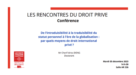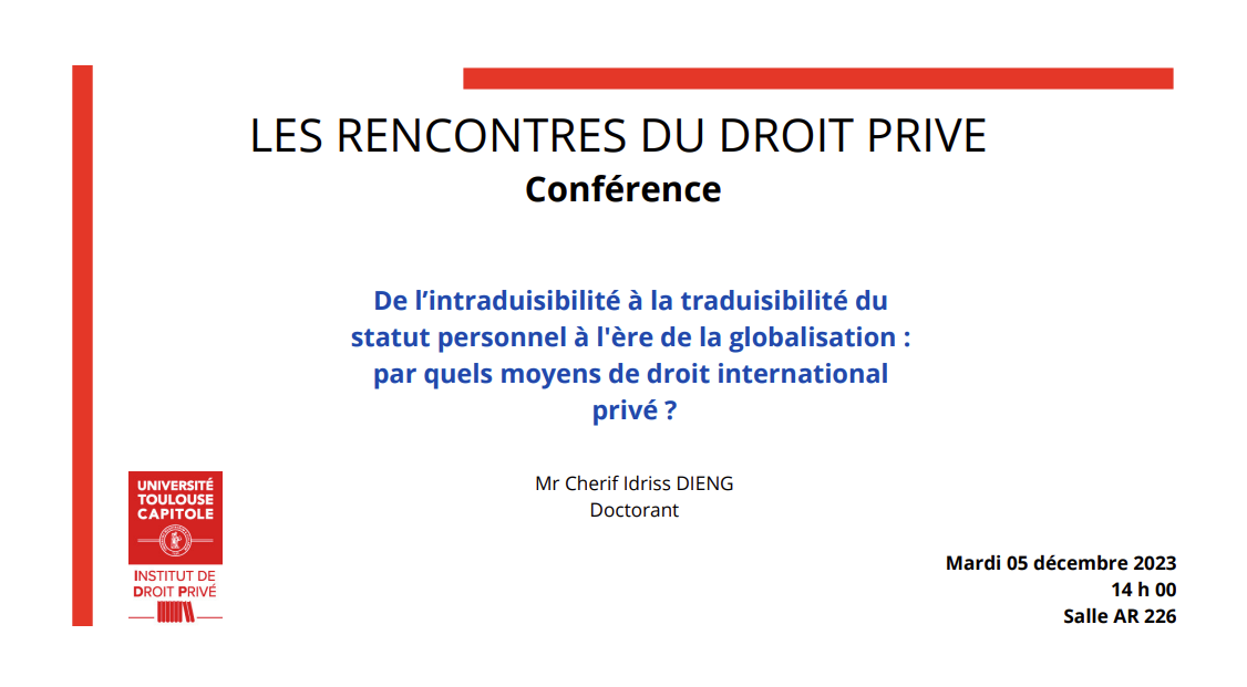 "De l'intraduisibilité à la traduisibilité du statut personnel à l'ère de la globalisation : par quels moyens de droit international privé ?", Rencontres du droit privé